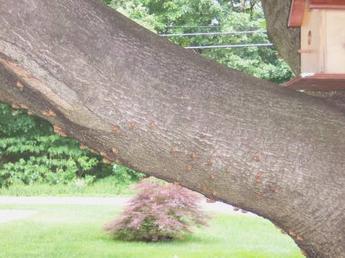 They don't hurt you. I even let one walk on me. I was curious if it would bite...but it didn't even try. They molt and then sit for an hour or so...flickering their wings, to dry them I guess, and then fly away to the woods. There has to be millions of them in the woods at the edge of our property. At times, their mating sound is ear drum shattering!