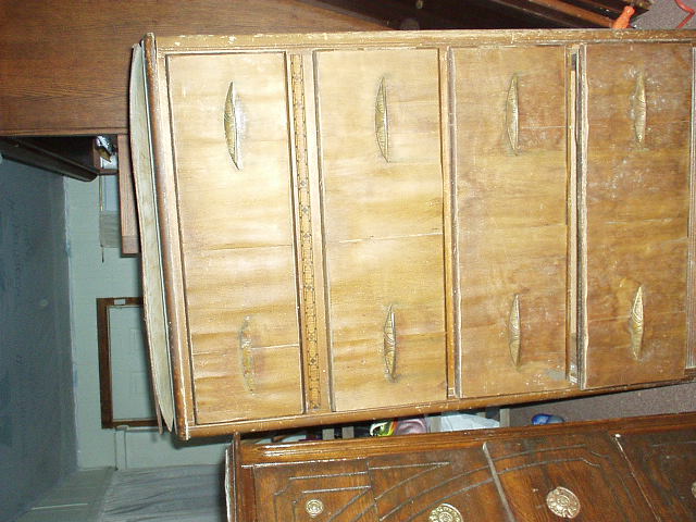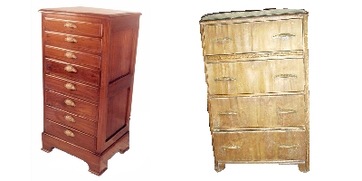 The first piece looks art-deco 1940sthe 2nd one looks late 1800s check the drawers to see if the joints are dovetailed (better craftsmanship) or a lap joint I agree with Darogle take it to a dealer and ask questions, to find a makers name look at the back of the draws, the back or on the bottom of the chest,also dont throw it away take and have it repaired depending on the quailty it will sell for about 1/2 of original