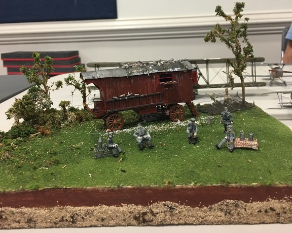 The promised pictures from Saturday's show.First, an interesting mini-diorama from a friend of mine, Mike, who works mainly in 1/72 scale. The model is of a Brieftaube Abteilung (Mail pigeon section):